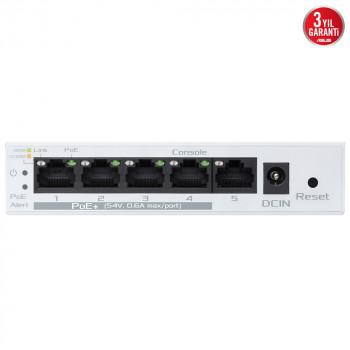 5-Port GbE akıllı yönetilebilir PoE+ switch, 4 adet PoE+ bağlantı noktası, 60W, PoE öncelik ayarı desteği, PoE AP’ler için Mükemmel, IP Kameralar, VoIP Telefonlar, ExpertWiFi router ile merkezi Yönetim