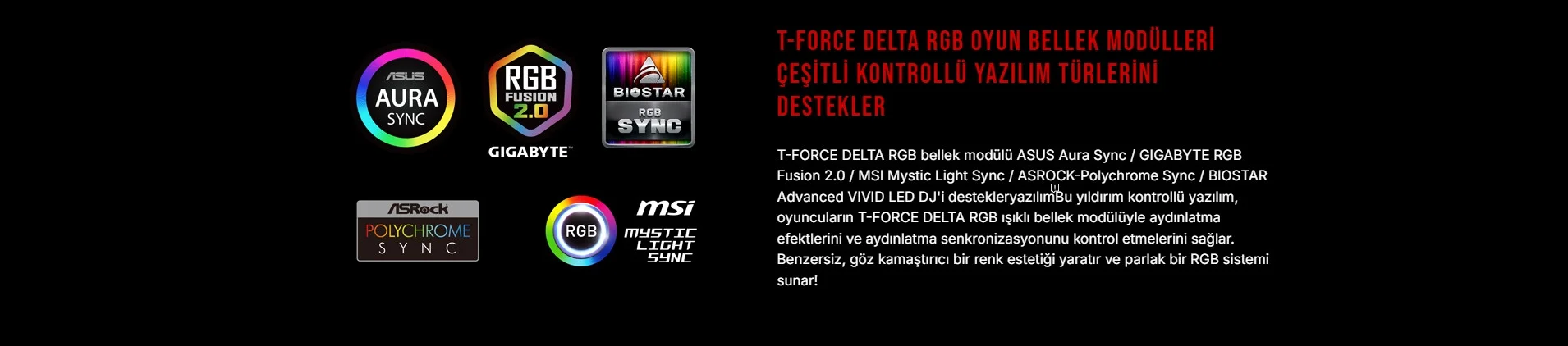 T-FORCE DELTA RGB Oyun Bellek Modülleri Çeşitli Kontrollü Yazılım Türlerini Destekler