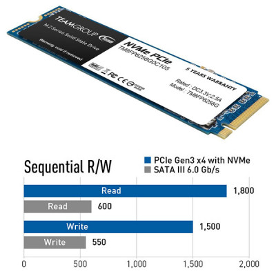 Team MP33 256GB 1600/1000MB/s NVMe PCIe Gen3x4 M.2 SSD Disk (TM8FP6256G0C101)